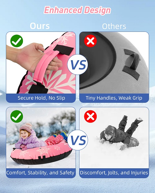 Upgraded grab handles provide a secure and comfortable grip, allowing riders to stay stable and safe while sliding down snowy hills.