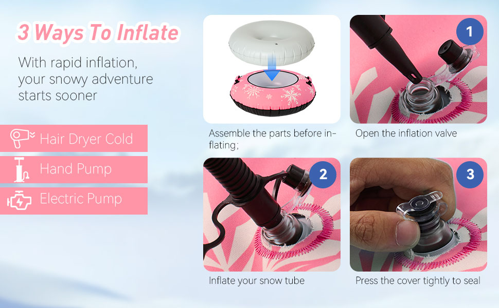 Pro Tip: For the fastest ride, inflate the inner tube until the canvas cover is taut. A tighter cover reduces drag on the snow and helps you glide faster.