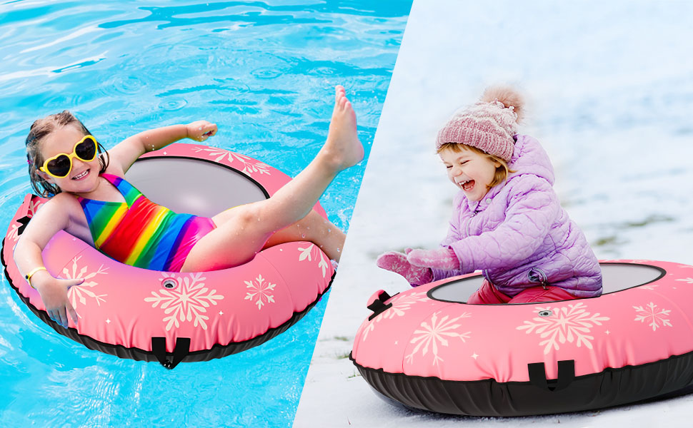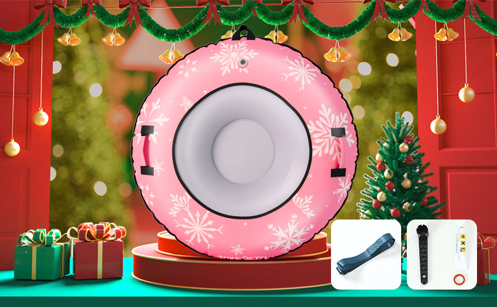 Canvas Cover, Snow Tube,ToolsOur 42" heavy duty inflatable snow tube is designed for both kids and adults who love winter sledding. Built with a durable PVC inner tube and a tear-resistant 600D canvas cover, this snow tube delivers stability, speed, and long-lasting performance on snowy hills.