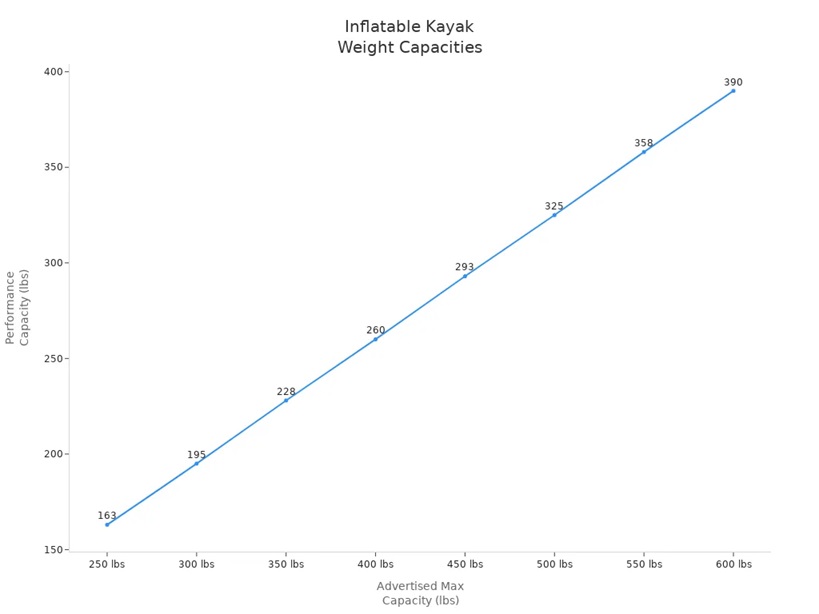 Vous souhaitez que votre kayak gonflable vous permette de transporter confortablement votre équipement. Chaque kayak indique une capacité de charge maximale, mais pour une performance optimale, il est conseillé de ne pas dépasser 65 % de cette limite. Voici un tableau pratique pour vous aider à y voir plus clair :